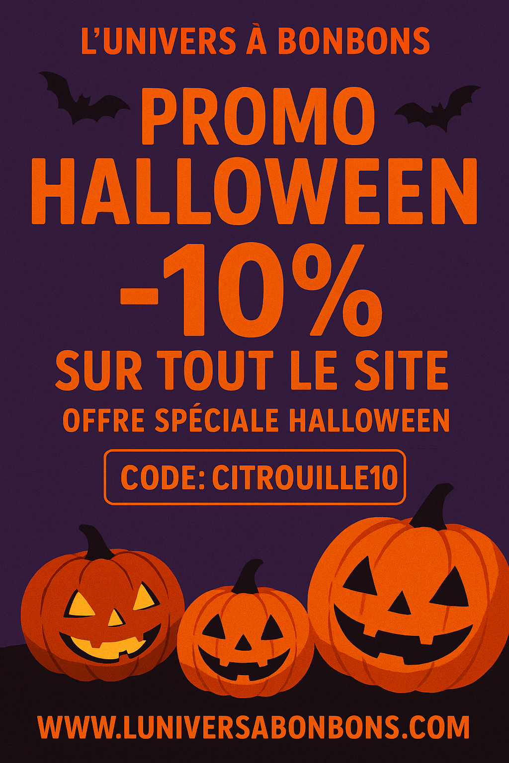 Profitez d'une réduction de 10% sur tous les articles pour célébrer Halloween!
