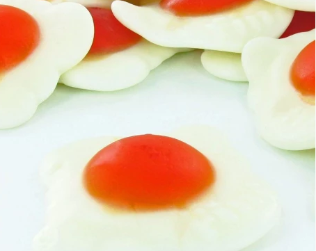 Bonbon gélifié et lisse en forme d’oeuf au plat géant.