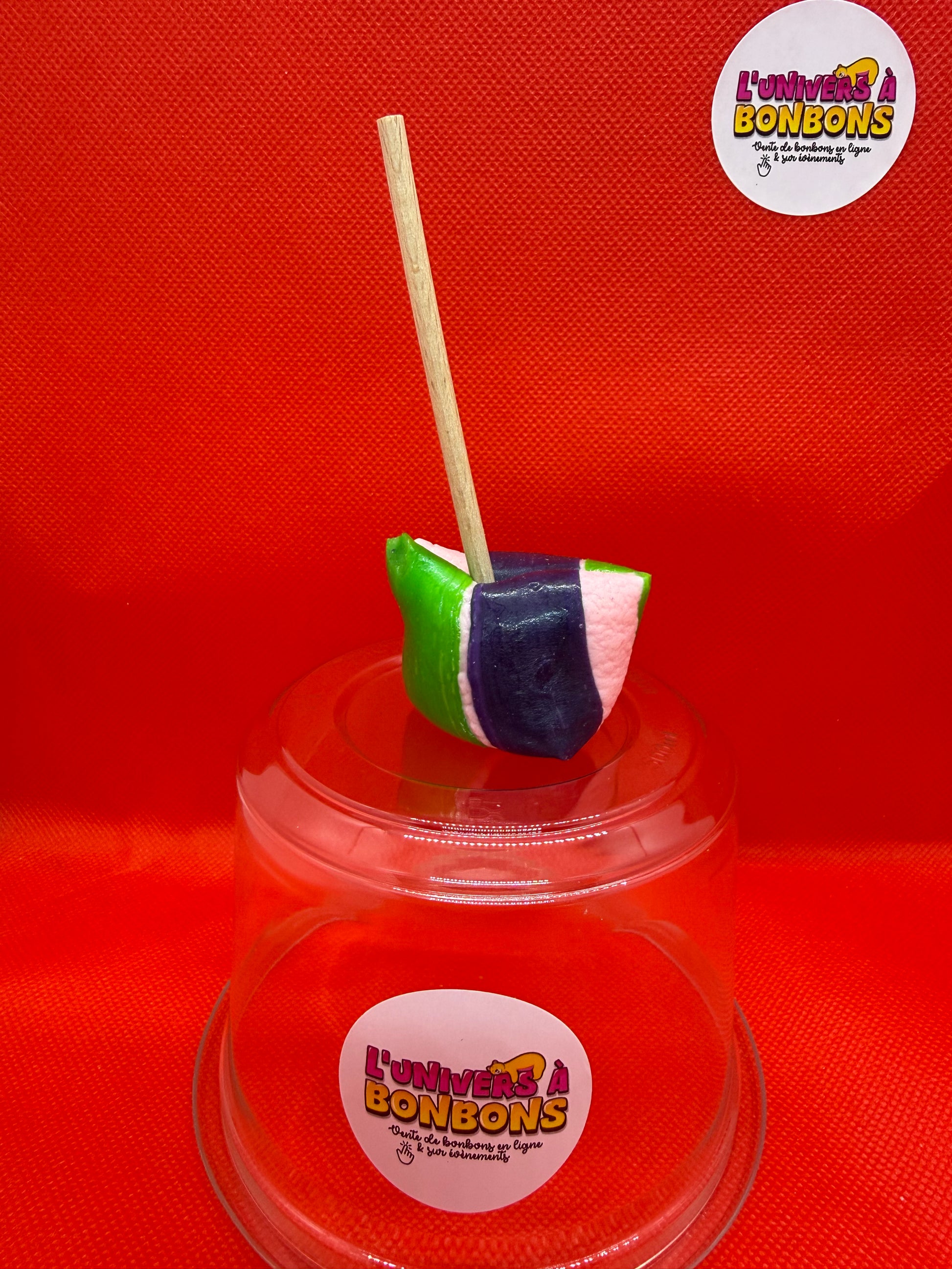 Ce pilon ou chique foraine sont de délicieuses sucettes artisanales aux parfums et couleurs variés , elles vous transporteront avec leur forme de berlingot sur bâton de bois. Profitez de cette sucette authentique pour une expérience gourmande unique.